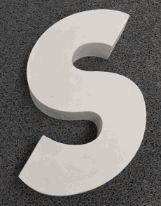 Letras y simbolos que se realizan en un solo corte, el espesor varia de acuerdo al material elegido, desde 0.3mm en el caso de los metales (cobre, acero, aluminio) y hasta los 100mm como en el caso del polietileno de alta densidad.