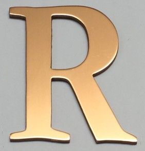 Letra de Cobre , el cobre es un material que brinda a la vez calidez y elegancia, muy facil de trabajar y permite combinarlo con otros materiales, necesita ser pulido con frecuencia a menos que se le aplique una laca de terminación